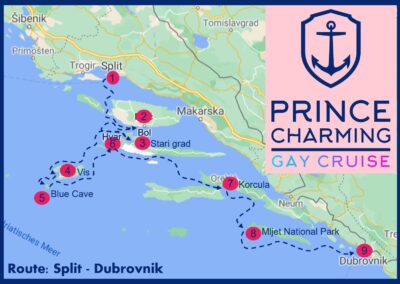 You can bring your luggage to the ship at noon, check-in is possible from 1 pm and you should be on board by 3 pm at the latest. Then the time has come and we set sail towards Bol, an island south of Split.